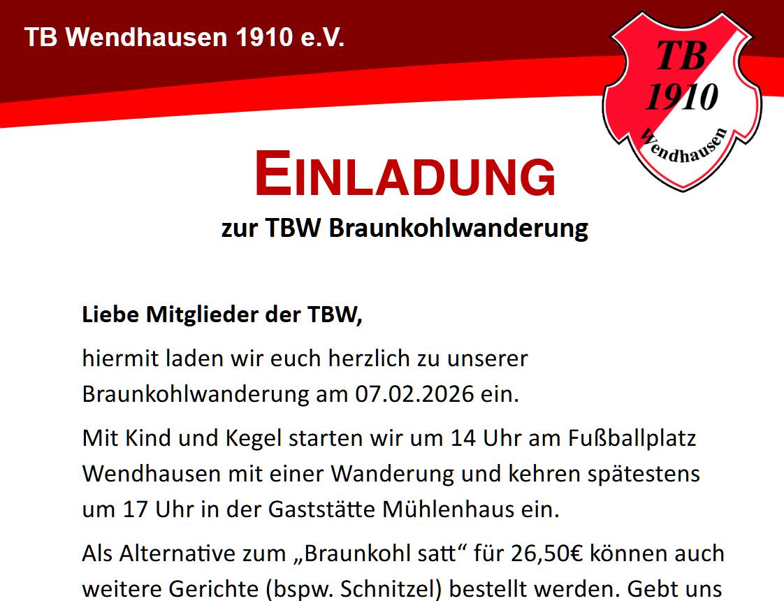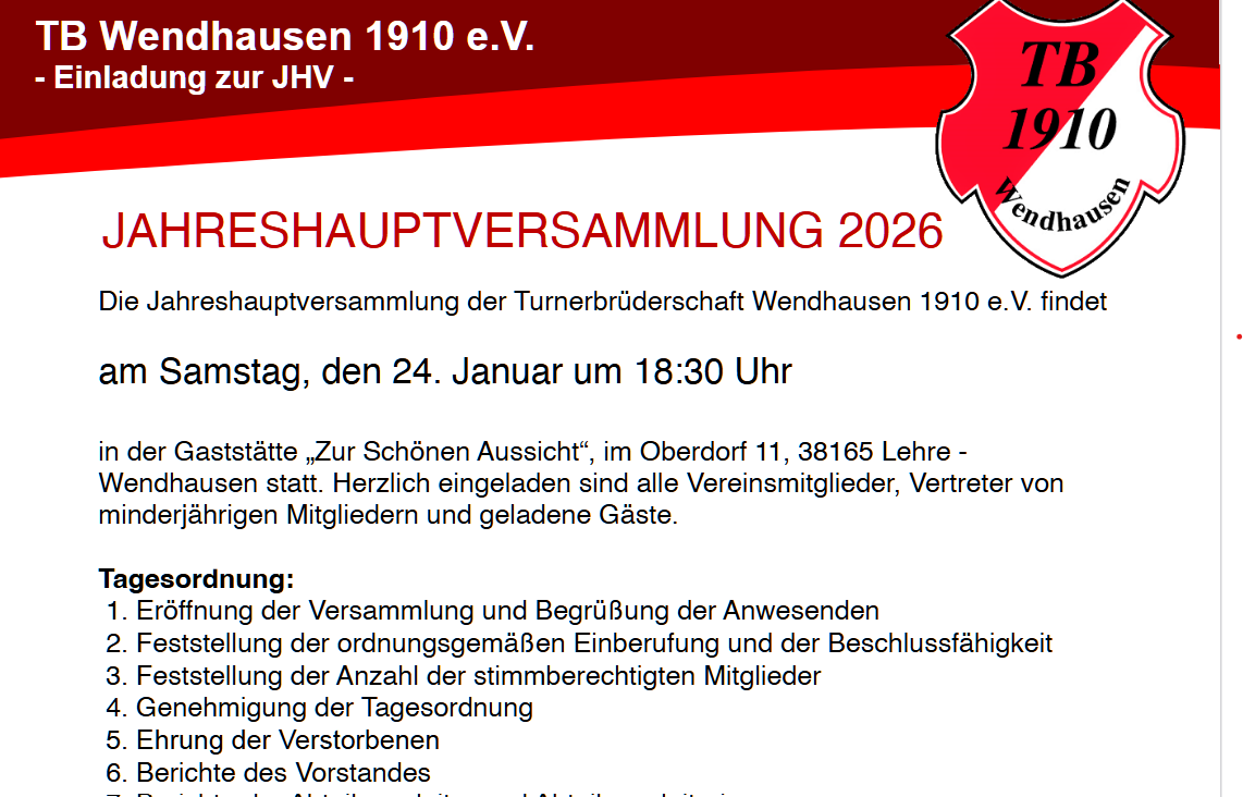 Schön, dass Ihr den Weg zur Internetpräsenz der Turnerbrüderschaft Wendhausen gefunden habt. Auf den folgenden Seiten könnt Ihr Euch rund um unseren Verein und dessen Angebote informieren.